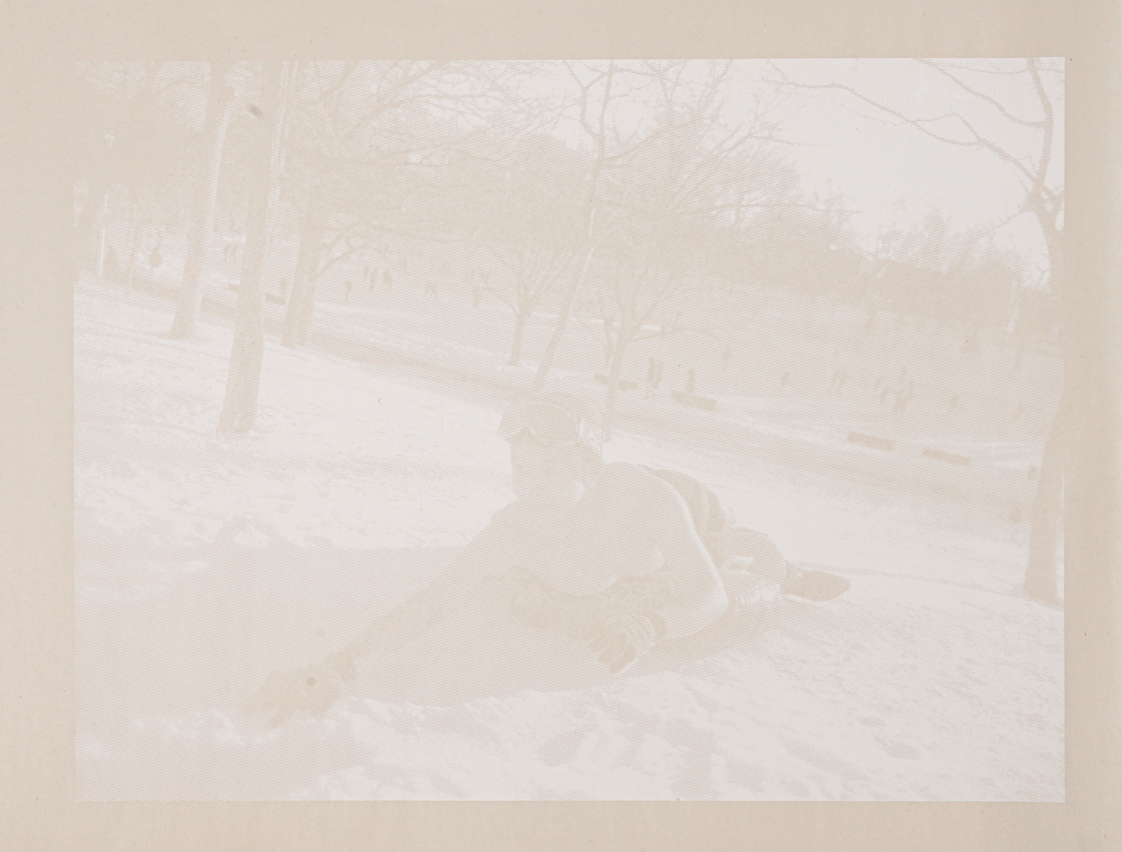 These layers operate as both image and condition. Snow is not a blankness but a stratification: compacted, shifting, uneven. Similarly, the body is not simply revealed or transformed, but negotiated through accumulation and erosion. The act of wiping, of pressing ink into crevices, mirrors a desire to both empty out and fill in—to scrape away what does not belong while simultaneously constructing a legible form.